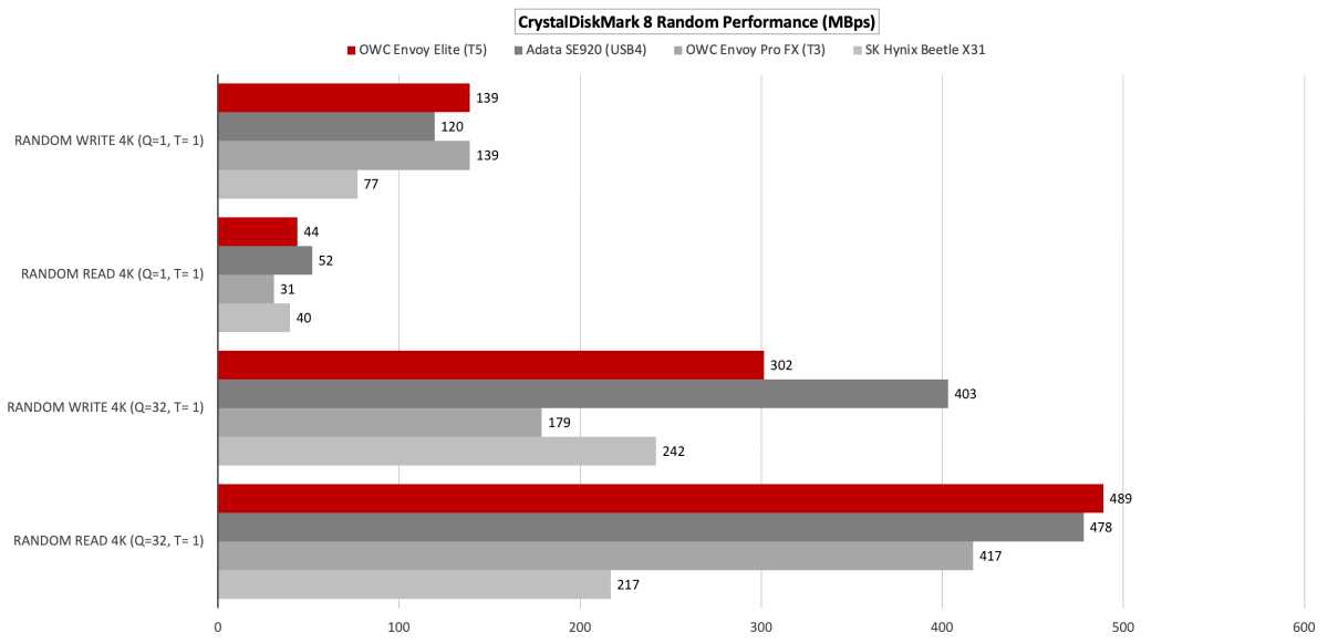 However, when it comes to random performance under CrystalDiskMark 8, the test picture painted no particular improvement. This stands to reason as increased throughput isn’t going to help any drive find/seek data faster.